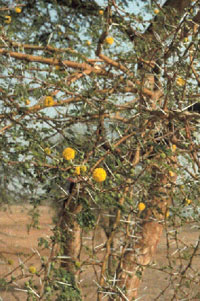 Acacia Gum (E414) is a dried exudation obtained from the stems and branches of natural strains of Acacia Senegal L.Willdenow (Leguminosae) and closely related species (Acacia Seyal).It consists of high molecular weight polysaccharides completely soluble in water.